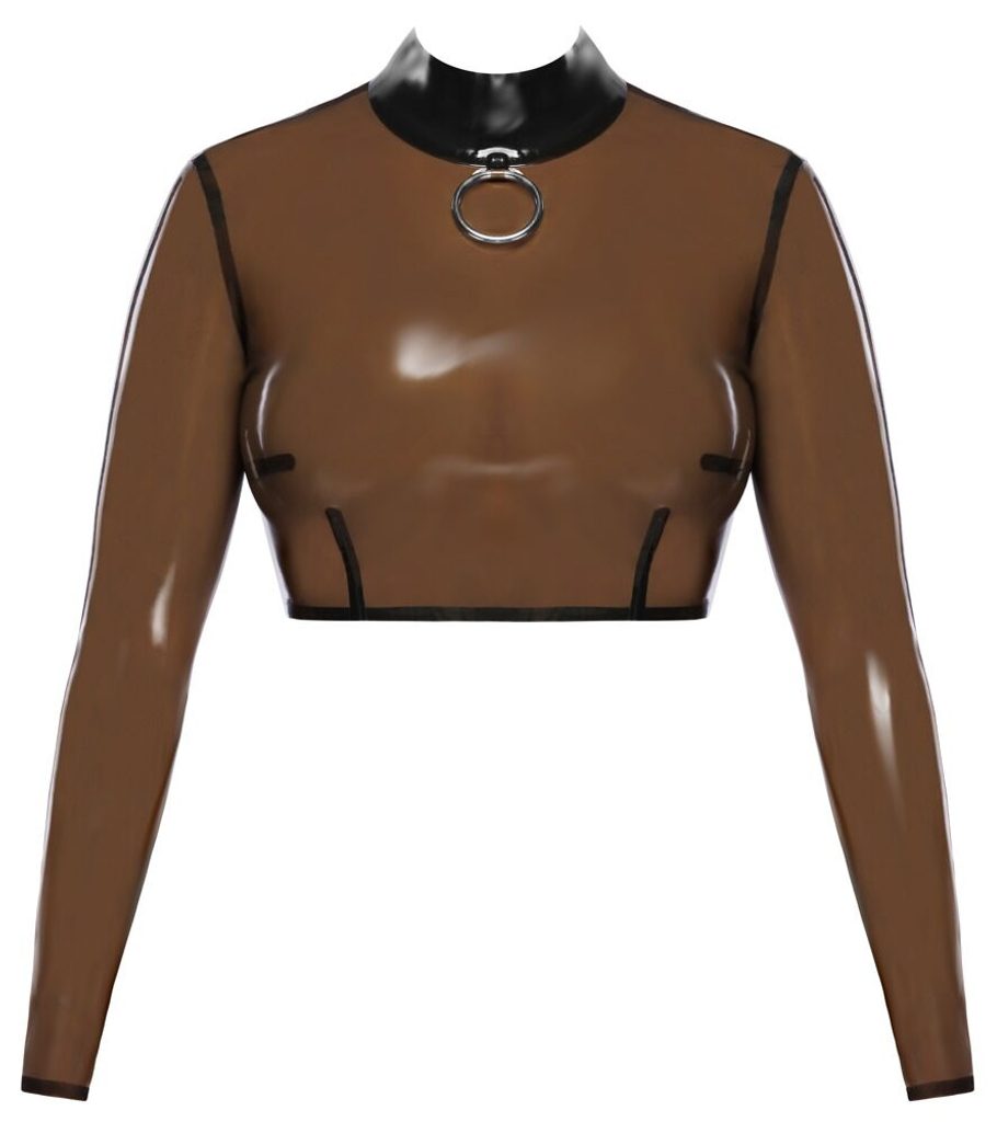 Styling tipp: Ez a felső fantasztikusan mutat magas derekú latex leggingsszel vagy fűző alatt viselve. A maximális „wow-hatás” érdekében ne felejtsen el szilikonfényt használni, amely mélységet és tükörfényt ad a füstszínű latexnek.