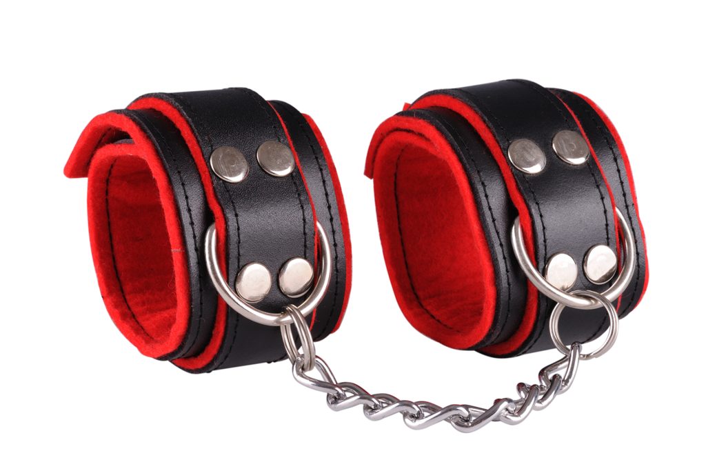 Fekete-piros bőr kézbilincs.