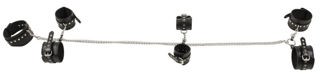 2 rabszolgaszíj/bilincs, amelyeket csuklóra vagy bokára lehet használni. A felkarokra további két szíj/bilincs rögzíthető.