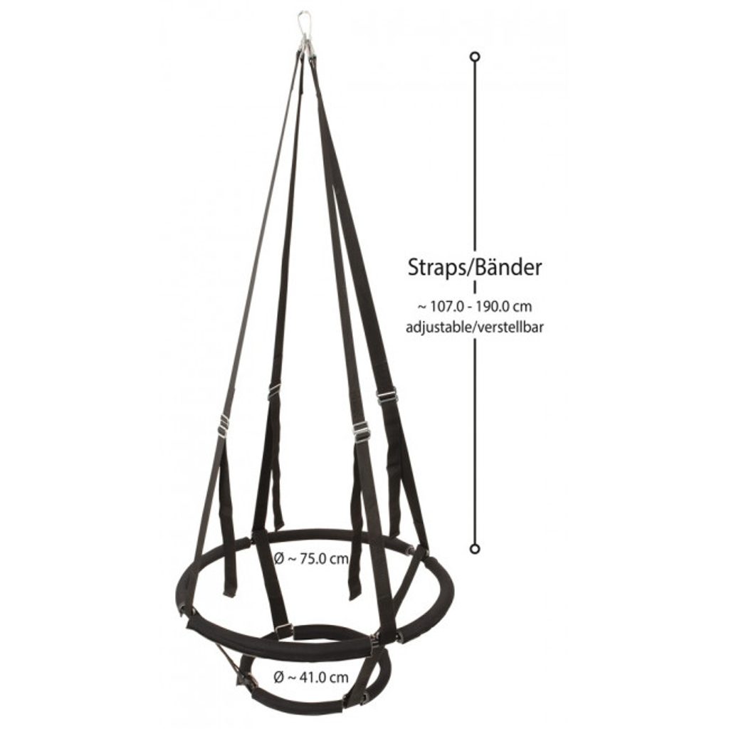 A Sex Swing Ring gyorsan és egyszerűen felszerelhető egy masszív karabiner segítségével, és magassága az egyéni igényekhez igazítható. Ezenkívül a tartós anyagának köszönhetően kültéren is használható.