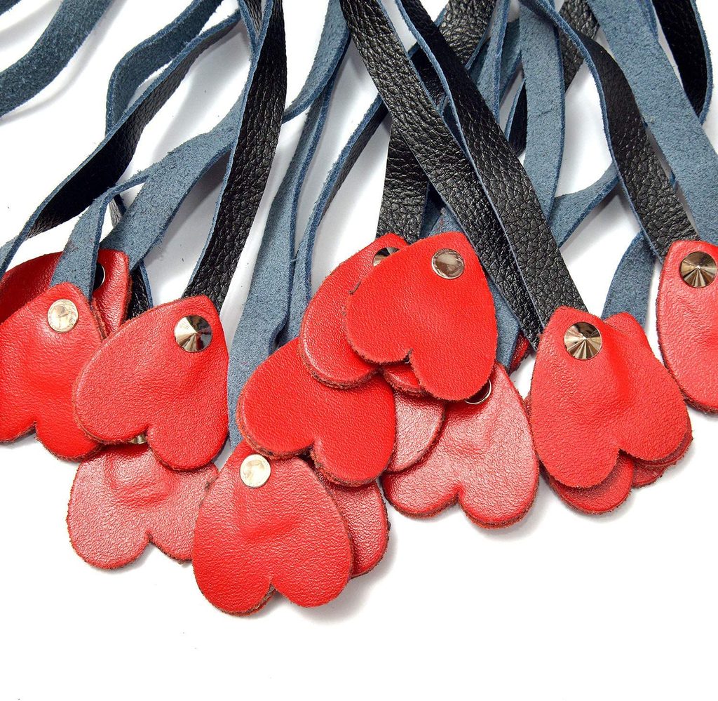 Luxus bőr ostor, egyedi készítésű, szív alakú rojtokkal.