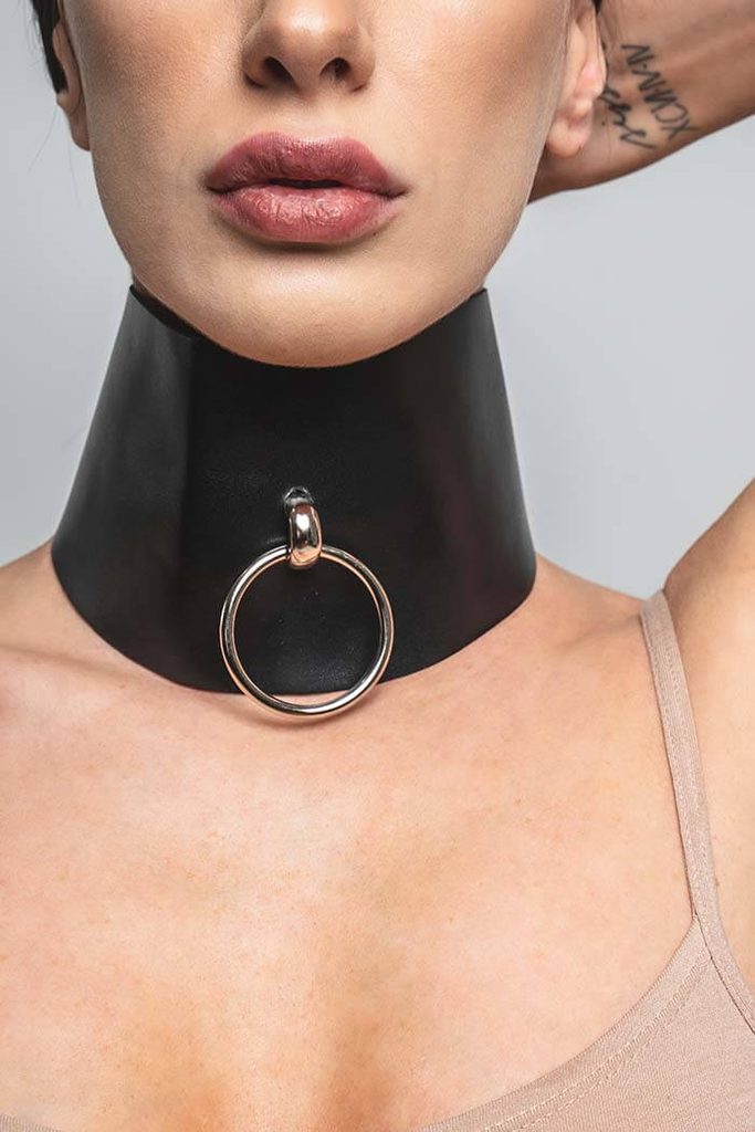 A bondage nyakörv kiemeli a nyakat és a dekoltázst.