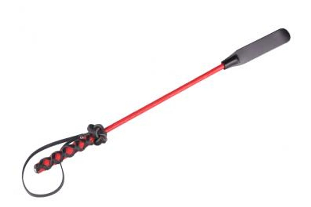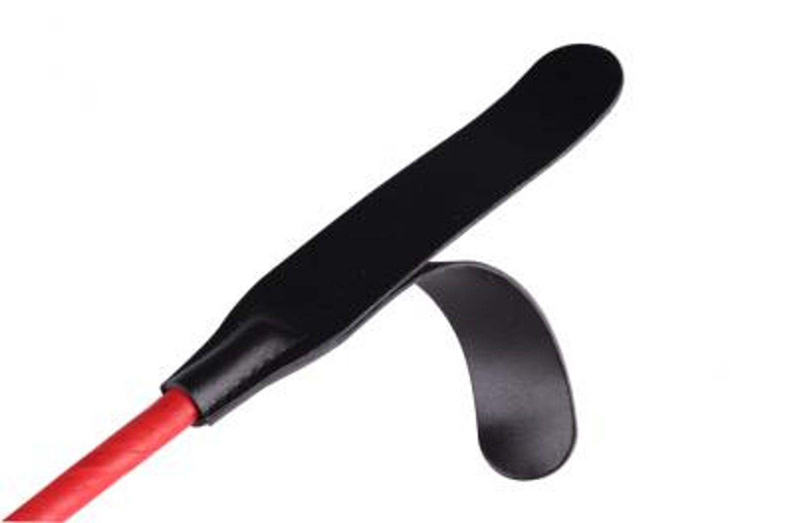 Červený kožený bičík zakončený dvojoválem. Délka 50 cm.
