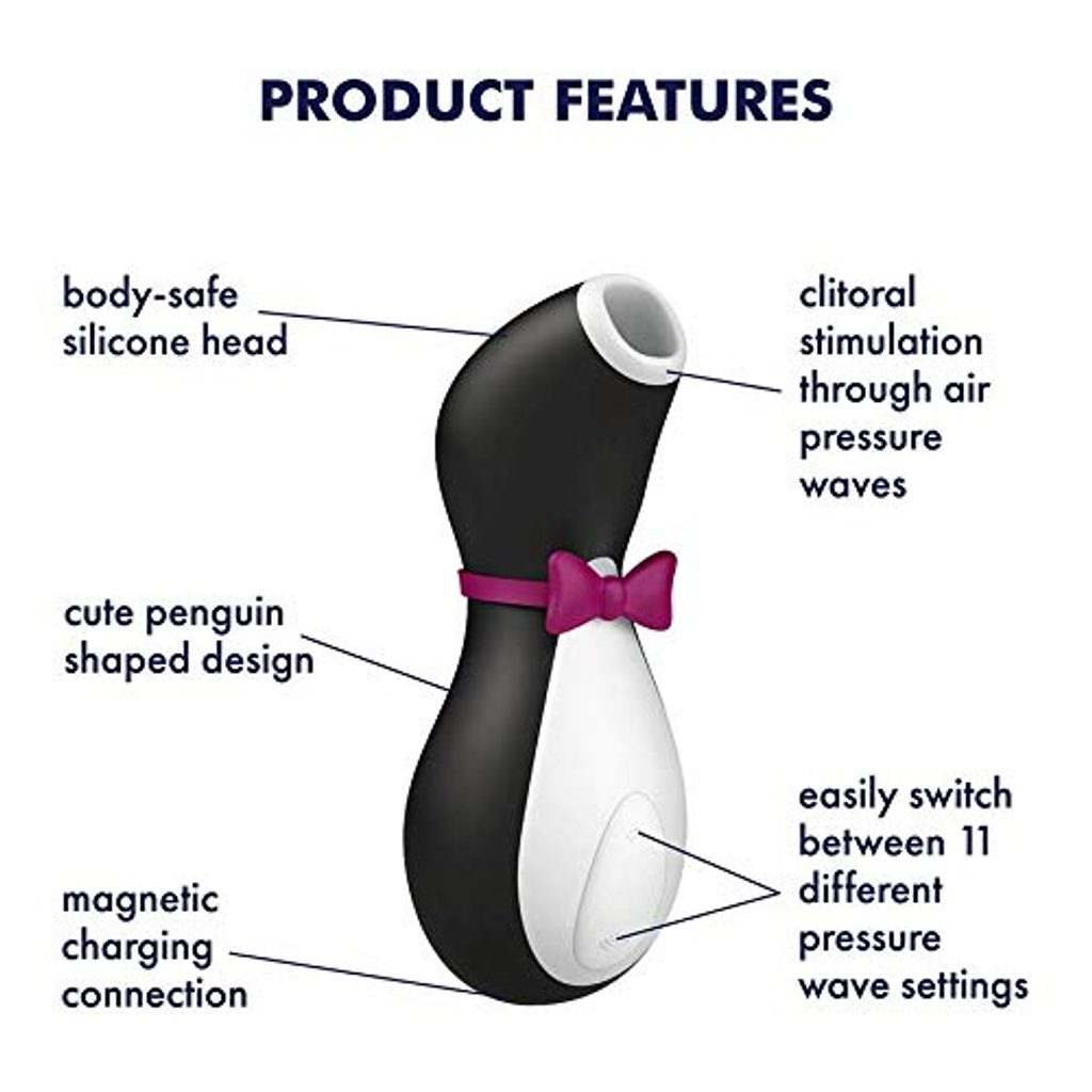 A Penguin elegáns fekete öltönyben érkezik, és ötvözi a Satisfyer forradalmian új, szabadalmaztatott Air-Pulse technológiáját egy bájos és játékos dizájnnal. Ergonomikus formája ideális kezdők számára, könnyű kialakítása pedig tökéletes útitárssá teszi.