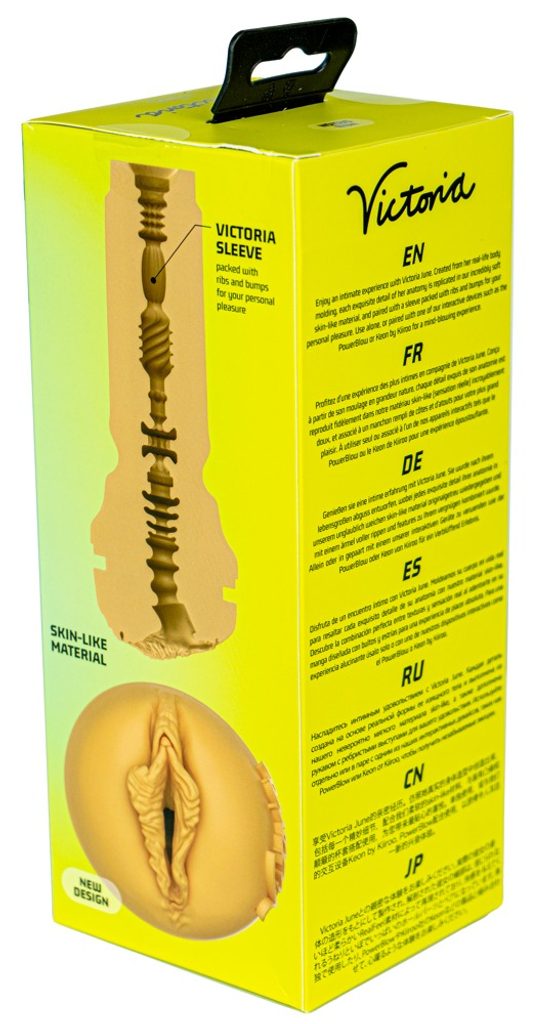 Tapasztald meg a valósághű és rendkívül intenzív élvezetet a Feel Victoria June maszturbátorral a Kiiroo-tól. A belső csatorna Victoria valódi anatómiája alapján készült, és változatos textúráival teljes stimulációt biztosít. A TPE anyag puha tapintású és kiválóan közvetíti a mozgást. A bemenetnél Victoria aláírása is megtalálható mint egyedi részlet.
