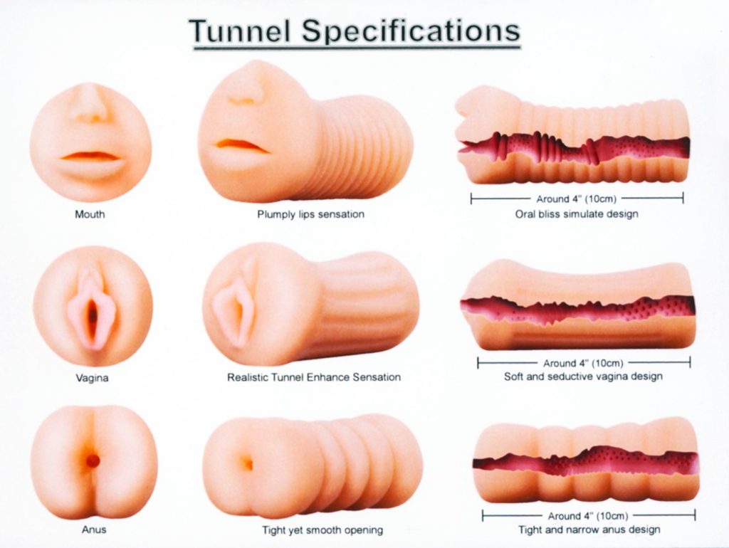 Ez a NMC készlet három különböző nyílással rendelkező maszturbátort tartalmaz. Valósághű száj-, hüvely- és végbélnyílás-replikákkal.