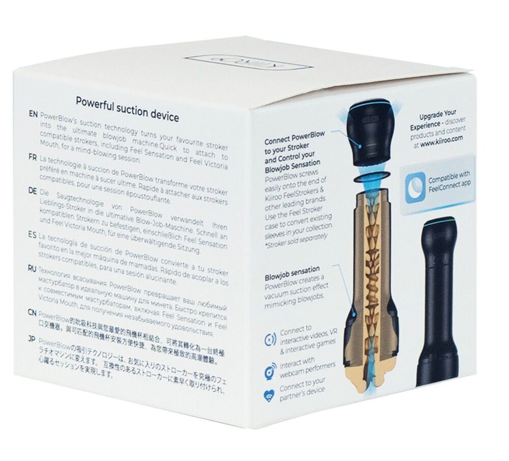 Szívófeltét automatikus és interaktív orális élvezethez! A PowerBlow tökéletesen illeszkedik a Kiiroo Feel Strokeréhez, és a maszturbátort teljesen automatizált orális stimulációs géppé alakítja. Ez a szívófeltét könnyen rácsavarható a Feel Strokerre (vagy bármely más hasonló felépítésű maszturbátorra). A különböző szívási módok kézzel, közvetlenül az eszközön, vagy Bluetooth-on keresztül az alkalmazással vezérelhetők, lehetővé téve a teljesen automatikus és interaktív élményeket. Az eszköz USB-n keresztül újratölthető, és a töltőkábel a csomag része.