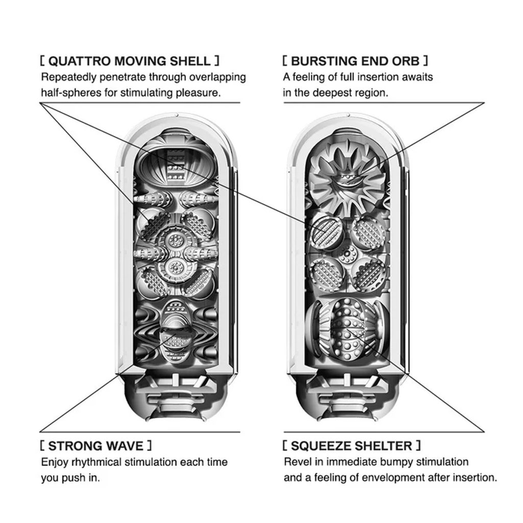 Innovatív maszturbátor és melegítő pálca a még valósághűbb élvezetért! A maszturbátor tartalmaz egy melegítő pálcát, amely kellemes hőmérsékletre melegíti a belső hüvelyt – ezzel fokozva a pénisz masszázsának realisztikus érzését. A belső hüvely 4 izgalmas és változatos pöttyös és barázdált textúrával rendelkezik, amelyek biztosítják a jó és hosszú távú hőtartást. A maszturbáció intenzitása növelhető a maszturbátor oldalának nyomásával. A maszturbátor kinyitható, így könnyen tisztítható. Beépített szárítóállvánnyal is rendelkezik, ami higiénikus szárítást tesz lehetővé. A maszturbátor, amelyet síkosítóval töltöttek meg, könnyen elhelyezhető a melegítő pálcán. A különálló, tápkábellel ellátott melegítő pálca más Tenga Flip maszturbátorokkal is használható, és exkluzív tárolótáskával érkezik.