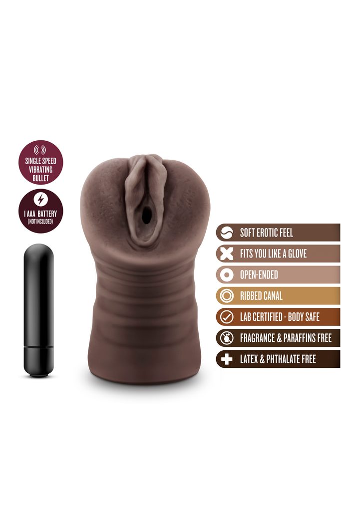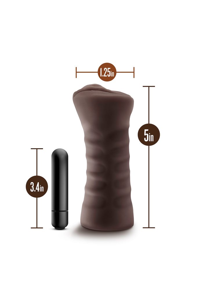 A Blush Brianna olyan finom, mint a forró csokoládé: puha, rugalmas és bármikor, bárhol készen áll, hogy elkényeztesse Önt. Ez a realisztikus maszturbátor szilárd, de hajlékony, és tele van érzéki textúrákkal. Egy egysebességes vibrációs golyóval érkezik. Mindkét végén nyitott, így könnyen tisztítható, és bármilyen méretű péniszhez illeszkedik. Prémium minőségű TPE-ből készült, amely biztonságos a test számára.