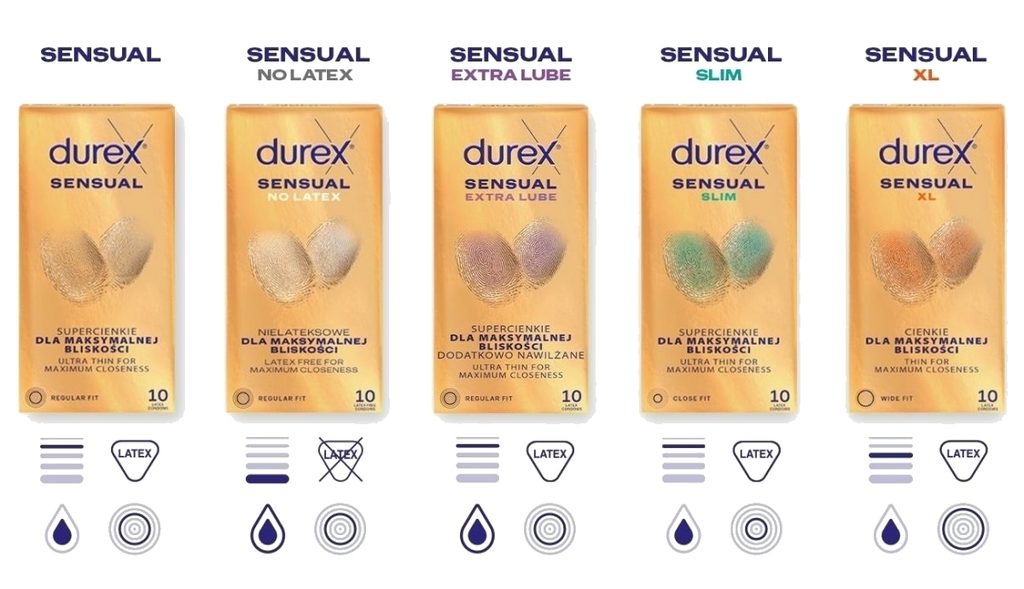 Latexmentes óvszerek Durex Sensual No Latex standard méretben.