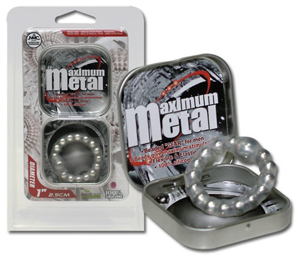 Erekciós gyűrű modern kivitelben, amelyhez tartozik egy fém tárolódoboz. A gyűrű felületét gyöngyök díszítik, amelyek fokozott izgatást és stimulációt biztosítanak.