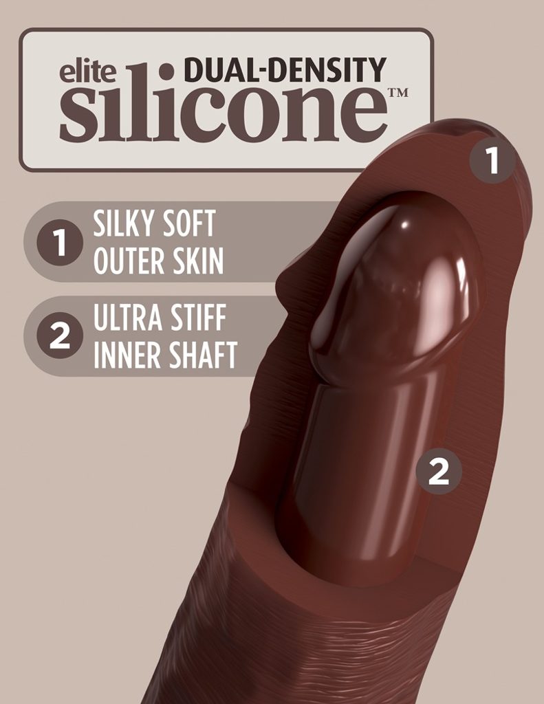 Akár egy valódi ember: Puha bőr – kemény mag! A King Cock Elite lenyűgöző 7 hüvelykes Szilikon Kétsűrűségű Dildója hiperrealista pénisz megjelenéssel, amely kétsűrűségű szilikon anyagból készült, és valódi bőr érzetét kelti. Maga a dildo szilárd, de rugalmas tengellyel rendelkezik, amely minden pozícióhoz alkalmas.