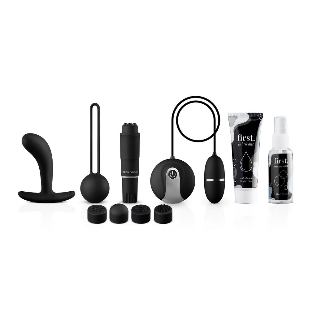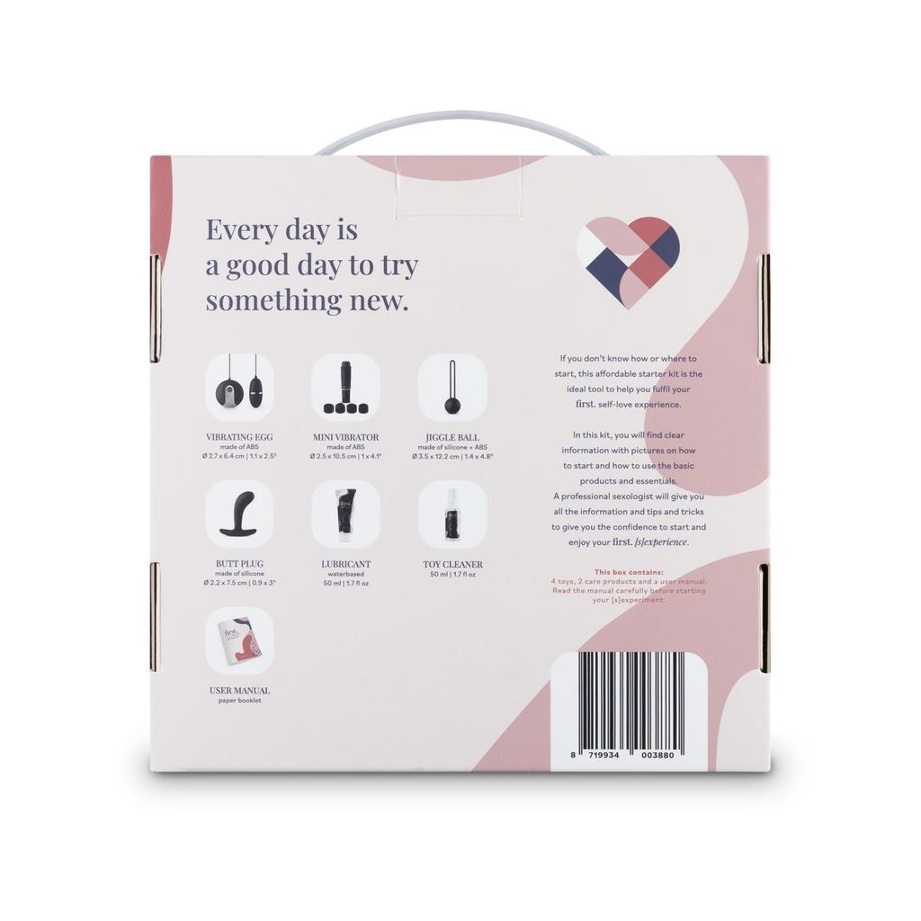 Az Első. Self-Love [S]Experience Starter Set egy tökéletes kezdő készlet nők számára, akik kíváncsiak különböző típusú játékszerek használatára, de még nem szereztek tapasztalatot. A doboz ugyanakkor remek kiegészítő pároknak is egy izgalmas estéhez a hálószobában. A meglepő tartalom számos lehetőséget kínál arra, hogy még jobban megismerjük saját testünket! A csomag tartalmaz egy távirányítós vibrációs tojást, egy mini vibrátort 4 különböző fejjel, egy gésagolyót, egy anál plugot, vízbázisú síkosítót és egy játékszer tisztítót. Minden játékszer bőrbarát anyagból készült és könnyen használható. Az átfogó és őszintén megírt kézikönyv (angol nyelven) tele van útmutatásokkal, mit szabad és mit nem, és elegendő önbizalmat ad, hogy elkezdhesd ezt az új utazást.