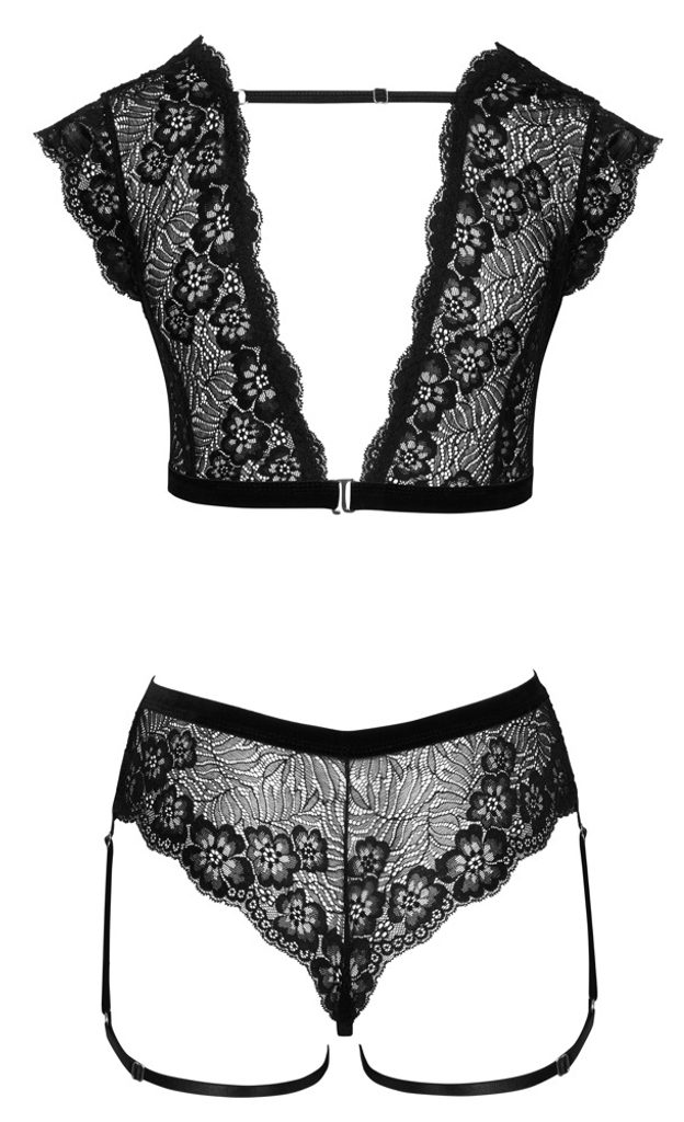 Élvezze az elegancia és csábítás kombinációját ezzel az exkluzív szettel a Cottelli LINGERIE kínálatából. Finom fekete csipke, kifinomult részletek és merész szabás teszik ezt a szettet tökéletes választássá különleges alkalmakra.
