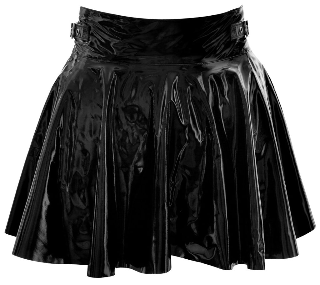 Hagyd, hogy ringjon! Ez az extrém módon kiszélesített miniszoknya vinylből készült, és mindkét oldalon kis csatokkal van ellátva. Csábító mozdulatra vár, hogy viselője minél több bőrt villantson meg. És ha ez nem lenne elég, az elülső 2-irányú cipzár is kinyitható.