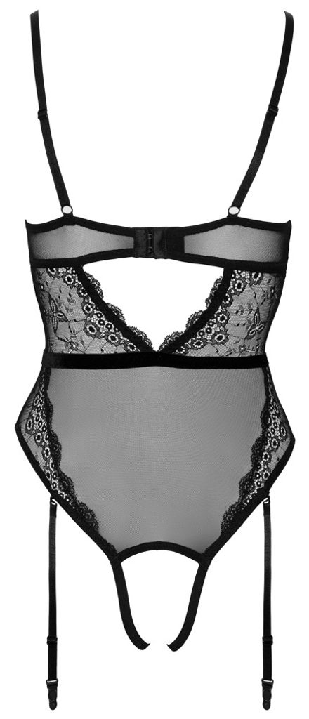 Érzéki csipkés body levehető harisnyatartókkal és gyöngy díszítéssel