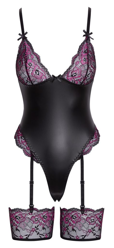 Cottelli Lingerie Thong Body with suspender straps black/pink