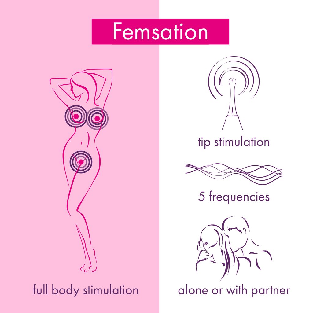 Érezze magát nőnek ezzel a Rianne S érzéki masszírozóval. A pontos stimuláció intenzív és különleges érzést nyújt. A Femsation ideális önálló használatra vagy partnerrel való együttlét során, mivel kicsi és könnyen kézben tartható. Az 5 frekvenciának köszönhetően kiválaszthatja az Ön számára legmegfelelőbb vibrációt. A Femsation új dimenziót adhat felfedezéseinek.