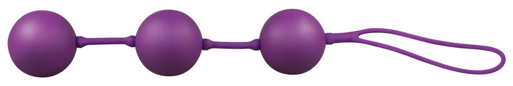 Lila gésagolyó trió vibráló belső golyókkal és praktikus kihúzó hurokkal a könnyű eltávolításhoz.
