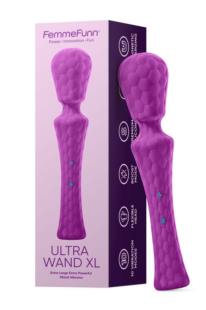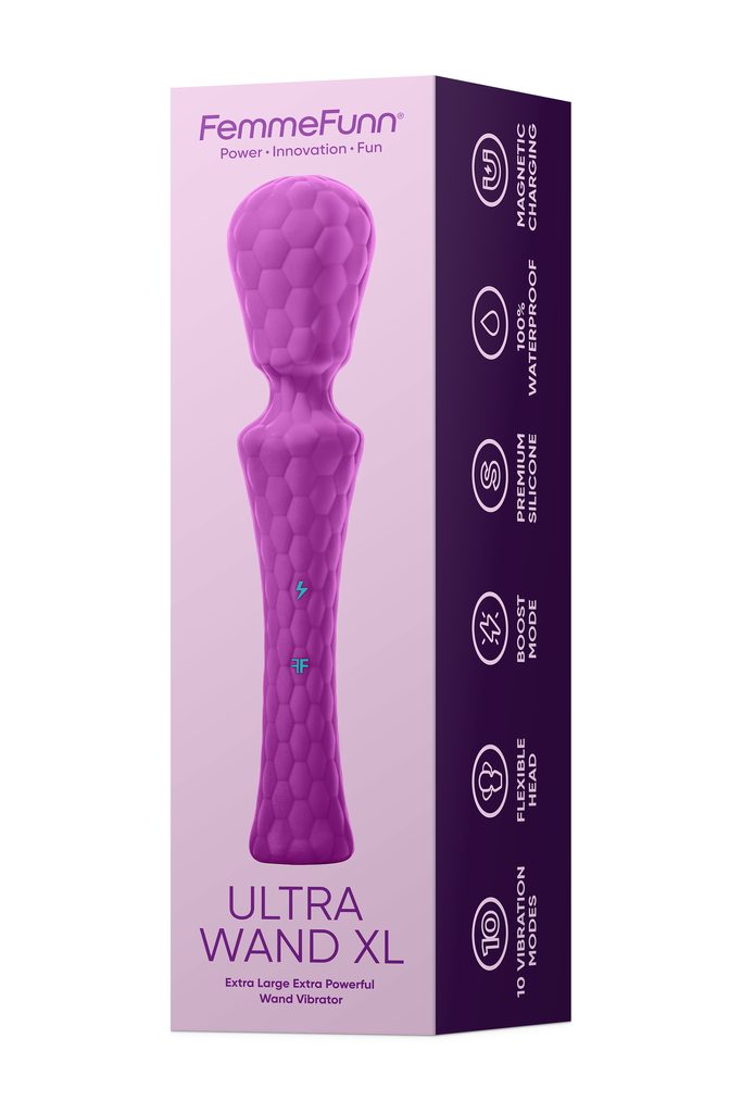 Extra nagy személyi masszázspálca vibrátor mindenkinek, aki úgy érzi, hogy a nagyobb jobb. Az Ultra Wand XL a FemmeFunn-tól extra teljesítményt nyújt az öröm iránti vágyak kielégítésére, különböző rezgési módokkal, rugalmas fejjel, ergonomikus fogantyúval a kényelem érdekében és egy gombnyomással aktiválható orgazmusfokozó funkcióval.