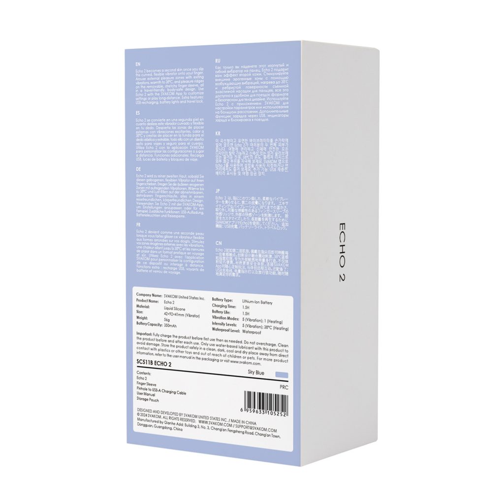 Okos technológia a nagyobb intimitásért: Csatlakoztassa az ECHO 2-t a SVAKOM App-hoz, hogy testreszabhassa a rezgéseket, csevegjen, videohívásokat indítson, vagy megossza az irányítást partnerével – akár a közelében, akár a világ másik végén van.
