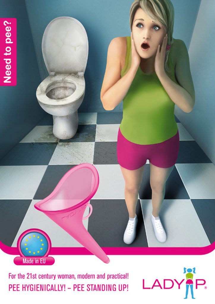Szüksége van mosdóra, de nincs a közelben? Nem probléma, itt a LadyP, az új higiénikus segédeszköz, amely lehetővé teszi a nők számára a vizelést állva. Sorban áll, és már nem bírja tovább? Horgászik? Csónakázik? Biciklizik? Kempingezik? A probléma megoldva.
