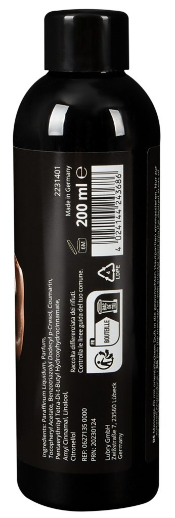 Kiváló minőségű erotikus masszázsolaj hosszan tartó síkosító hatással. Eredeti keleti illattal, amely segít feloldani a gátlásokat. Németországban készült.