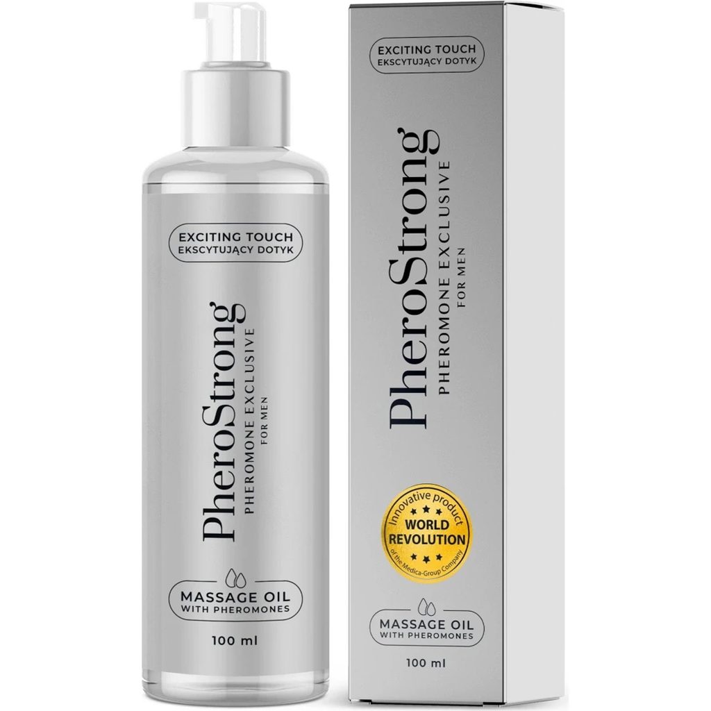 A PheroStrong Exclusive For Men feromonos masszázsolaj a luxus bőrápolást ötvözi az erőteljes férfias illattal és a feromonok hatásával. Az illat friss bergamottal és borssal nyit, pacsulival és vetiverrel mélyül, végül meleg cédrusfával és labdanummal zárul. A feromonokkal gazdagított olaj fokozza a vonzerőt, míg a kakaóvaj, avokádó- és kókuszolaj mélyen hidratálja és táplálja a bőrt.